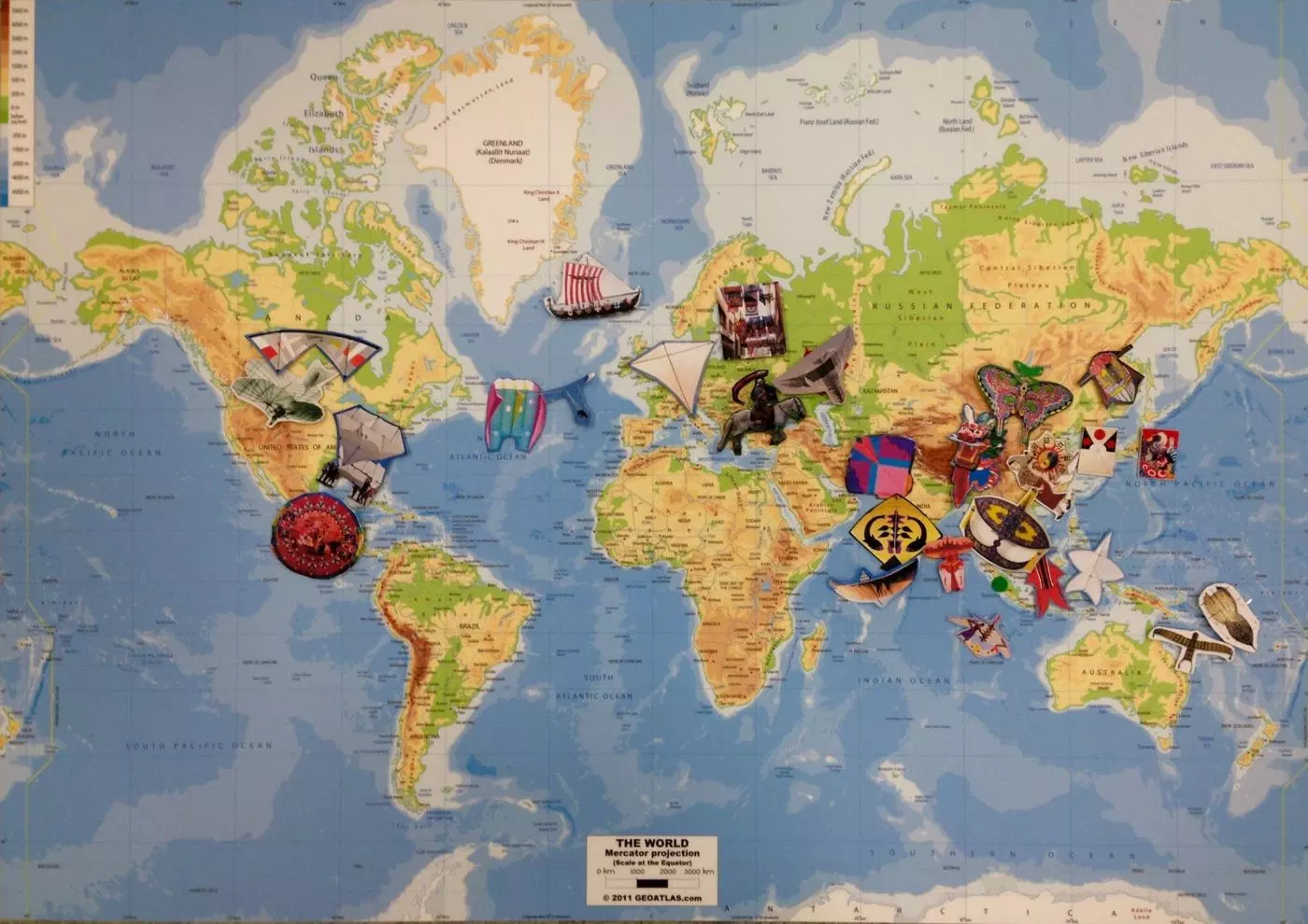 - Kites hanging from the seiling