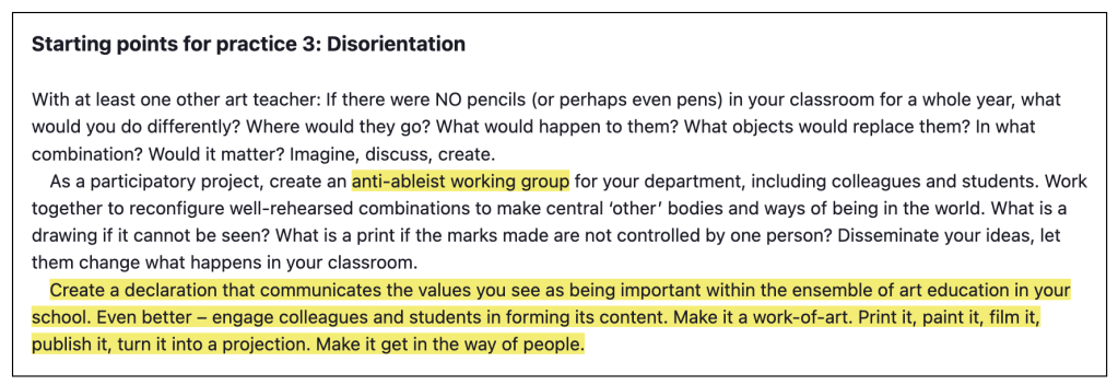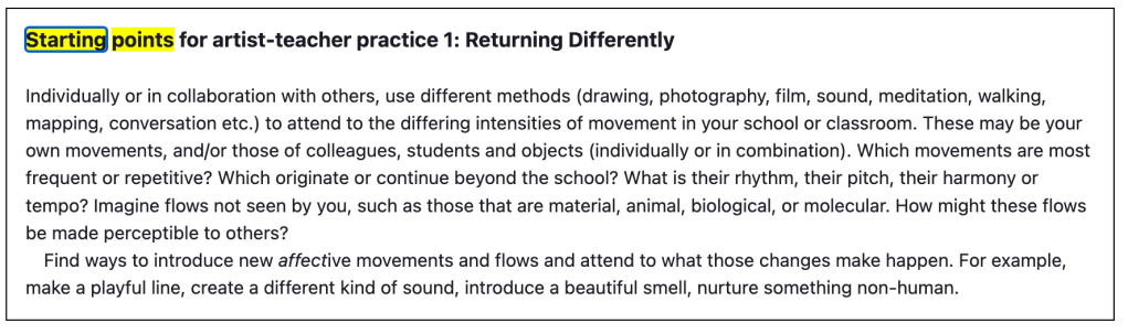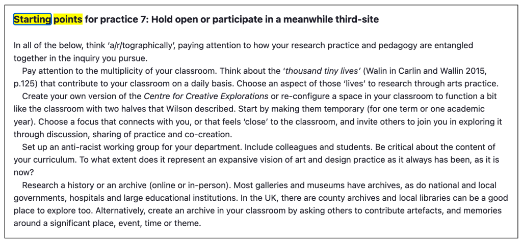 Starting points for artist-teacher practice by Carol Wild